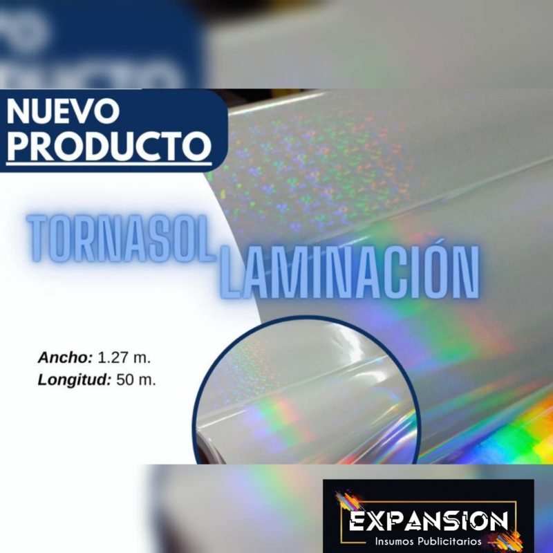El tornasol para laminación es un material especial diseñado para proteger y realzar impresiones y vinilos con un acabado iridiscente que cambia de color según la luz y el ángulo de visión. Este efecto visual crea un estilo moderno y llamativo, ideal para proyectos publicitarios, decorativos y gráficos que buscan destacar.