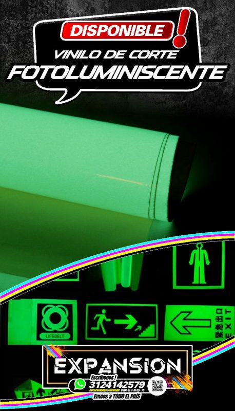 El vinilo de corte fotoluminiscente es un material adhesivo especial que absorbe la luz y la emite en la oscuridad, permitiendo crear señalización visible incluso en ambientes con poca iluminación. Es ideal para aplicaciones de seguridad, rutas de evacuación, señalización preventiva y proyectos decorativos que requieren alta visibilidad.