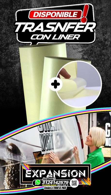 El transfer con liner es un material esencial en procesos de rotulación y aplicación de vinilos de corte, diseñado para facilitar el traslado y posicionamiento de gráficos, textos y diseños sobre diferentes superficies. Permite mantener la alineación y estructura del diseño durante la instalación, logrando un acabado limpio y profesional.