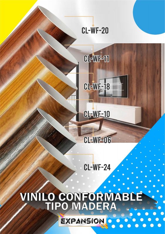 El vinilo conformable tipo madera está disponible en una variedad de tonos y acabados que simulan diferentes estilos de madera, permitiéndote elegir el diseño ideal según tu proyecto decorativo o de personalización.